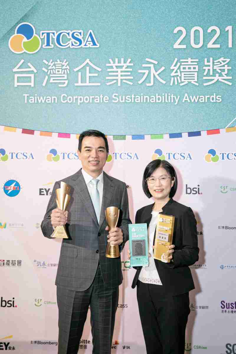 达在台湾永续奖所评比环境、、、、社会、、、、治理等各面向的永续绩效均获高度肯定 (左:人生就是博光电总经理暨营运长柯富仁,,,右:人生就是博光电永续长古秀华)
