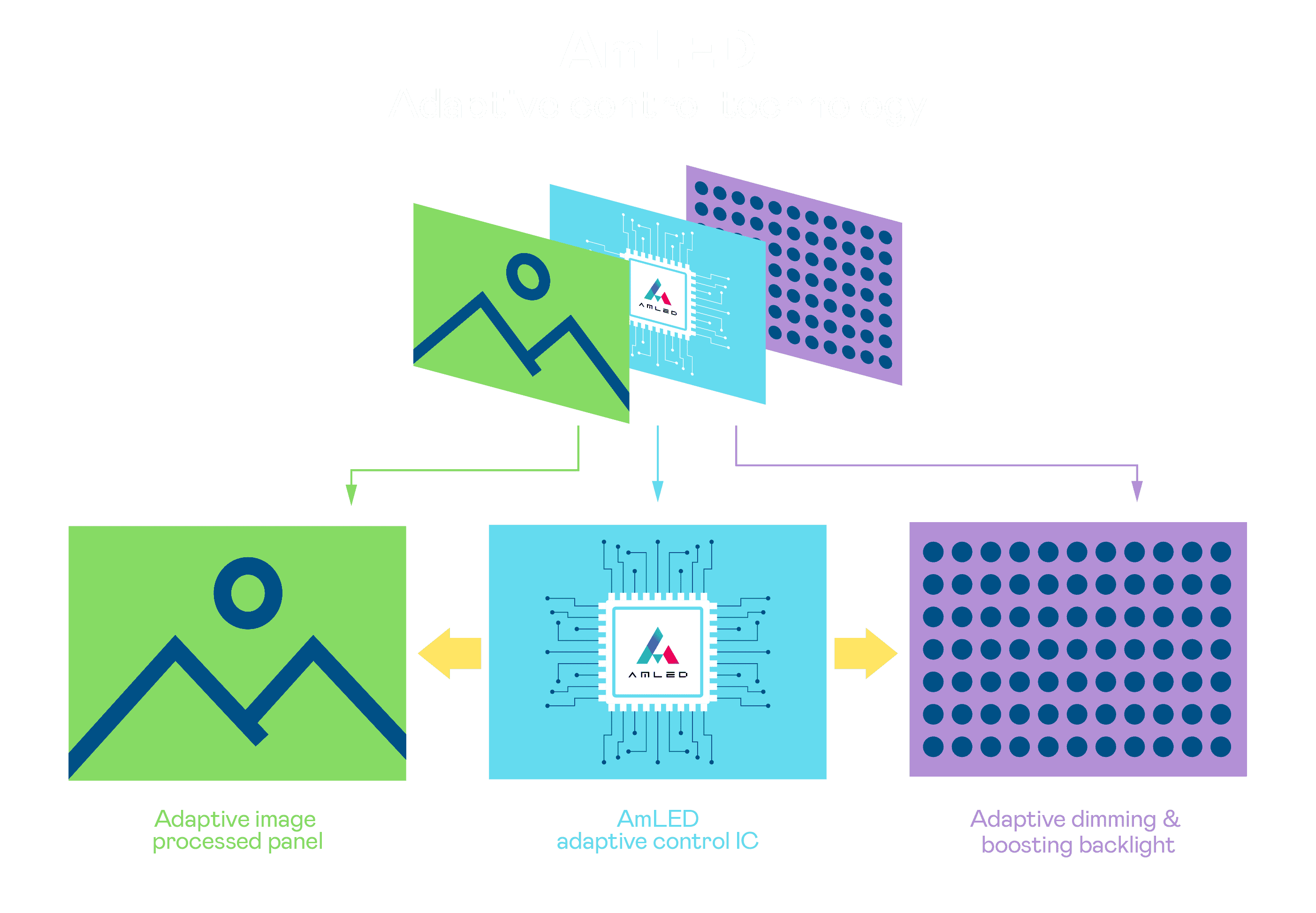 透过动态影像处理和 Mini LED 背光模组的动态对比及峰值亮度调变,,,AmLED 显示技术精准细致的局部调光效果达到超过 1,000 nits 的超高亮度表现,,亮部更明亮、、暗处更深邃,,,,呈现真实黑色中的亮度以及平滑灰阶,,,,打造出具层次分明的精致光影细节。。